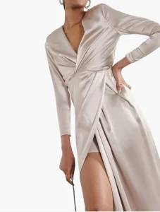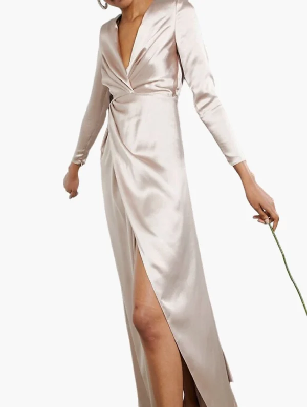 Blush Sadie Pleated Plunge Satin Wrap Dress