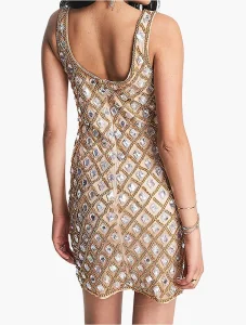 Blush Chain & Gem Embellishment Scoop Neck Mini Dress quantity