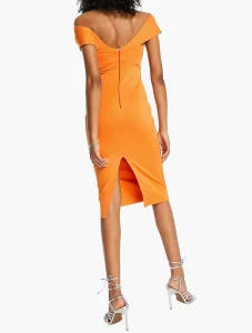 Burnt Orange Drape Bardot Corset Pencil Midi Dress