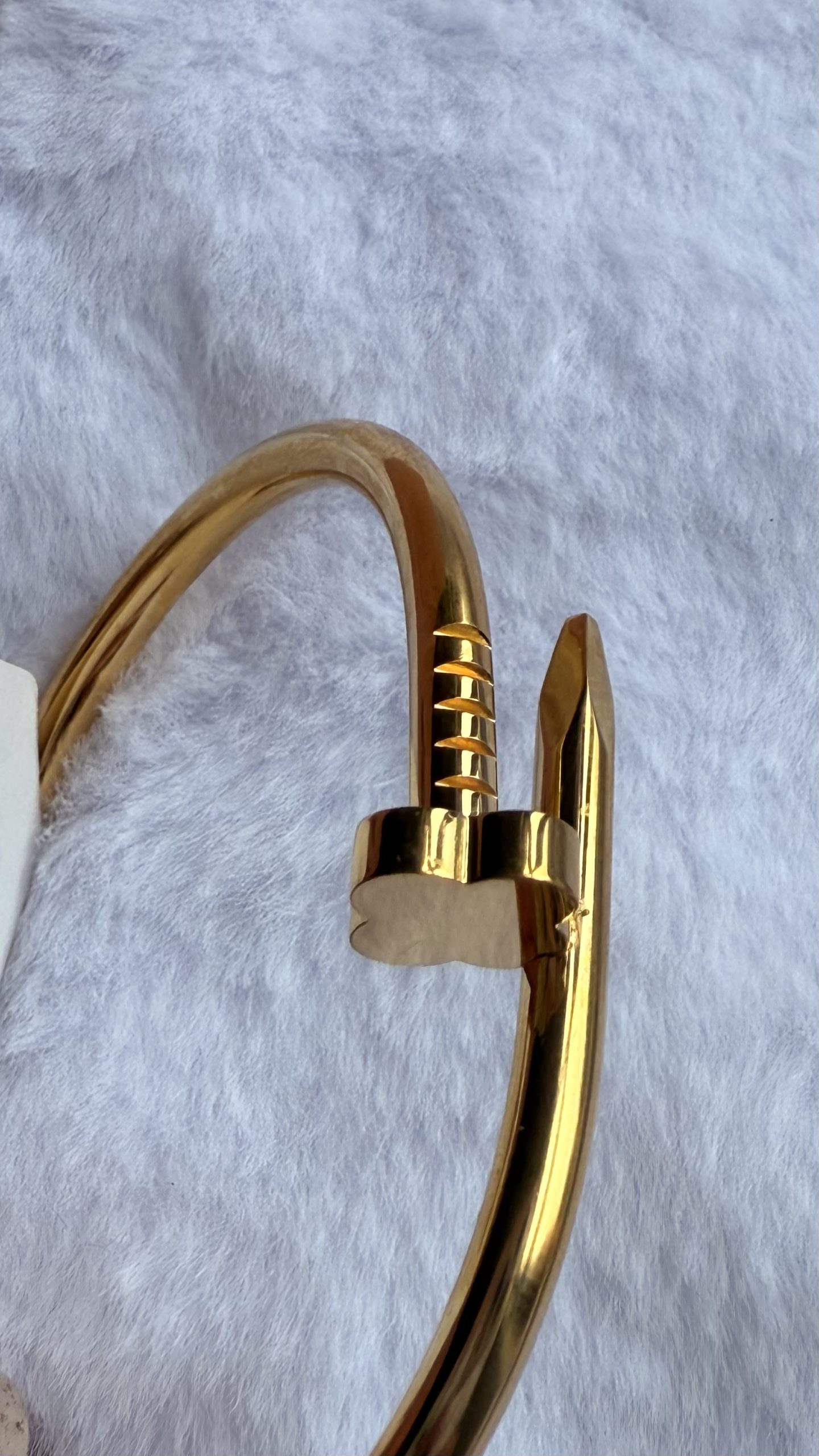 Gold Plated stainless steel waterproof solid bracelet with spike and clover detail.