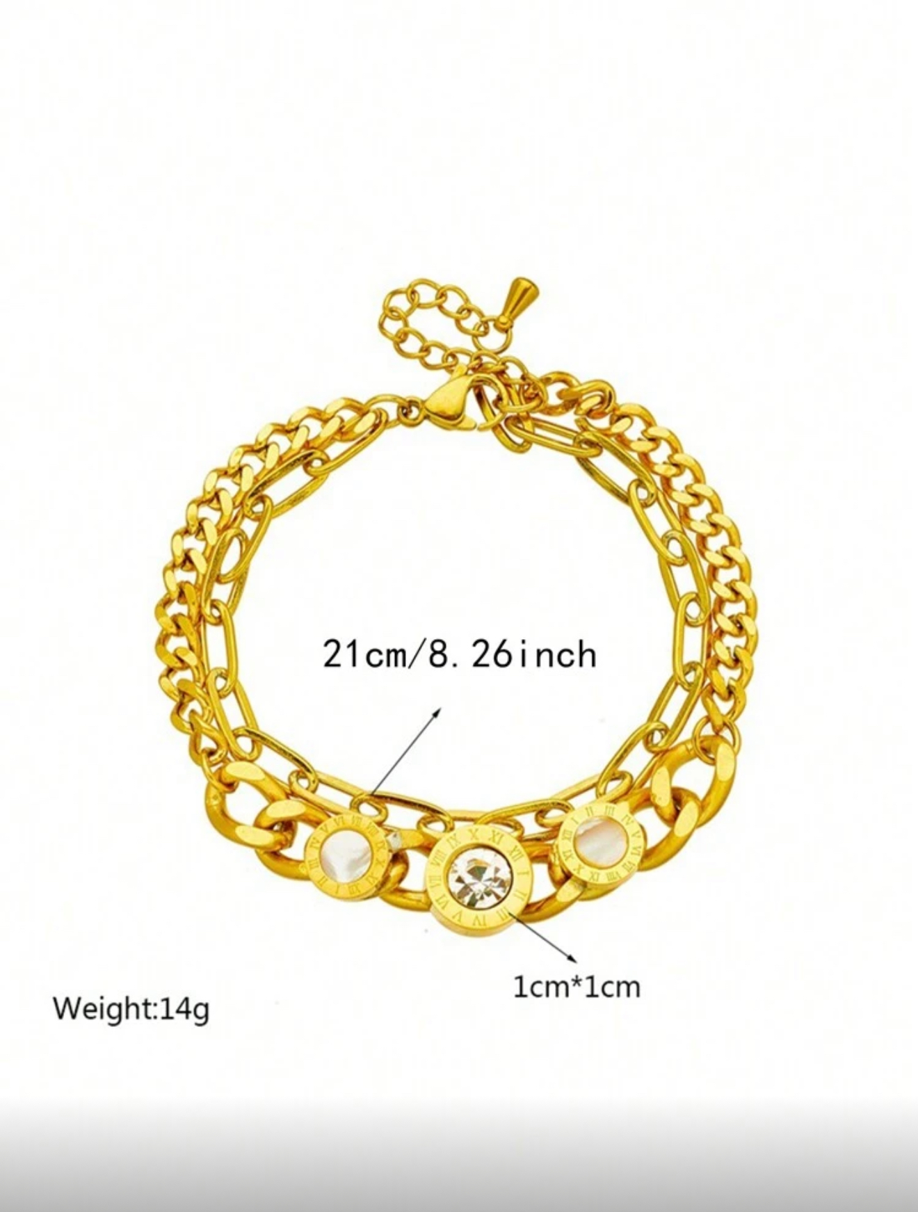 Double layered gold bracelet. Retro style with roman numeral pendants.
