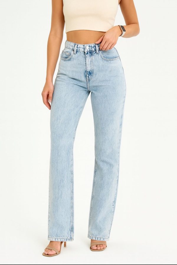 Straight-leg loose mom style jeans. Versatile with any style. Straight leg. Regular fit. Long length. Zipper fly. Model is wearing size S. Model length is 1.58cm.