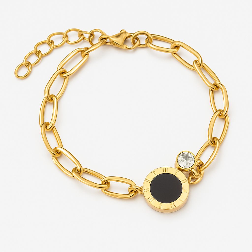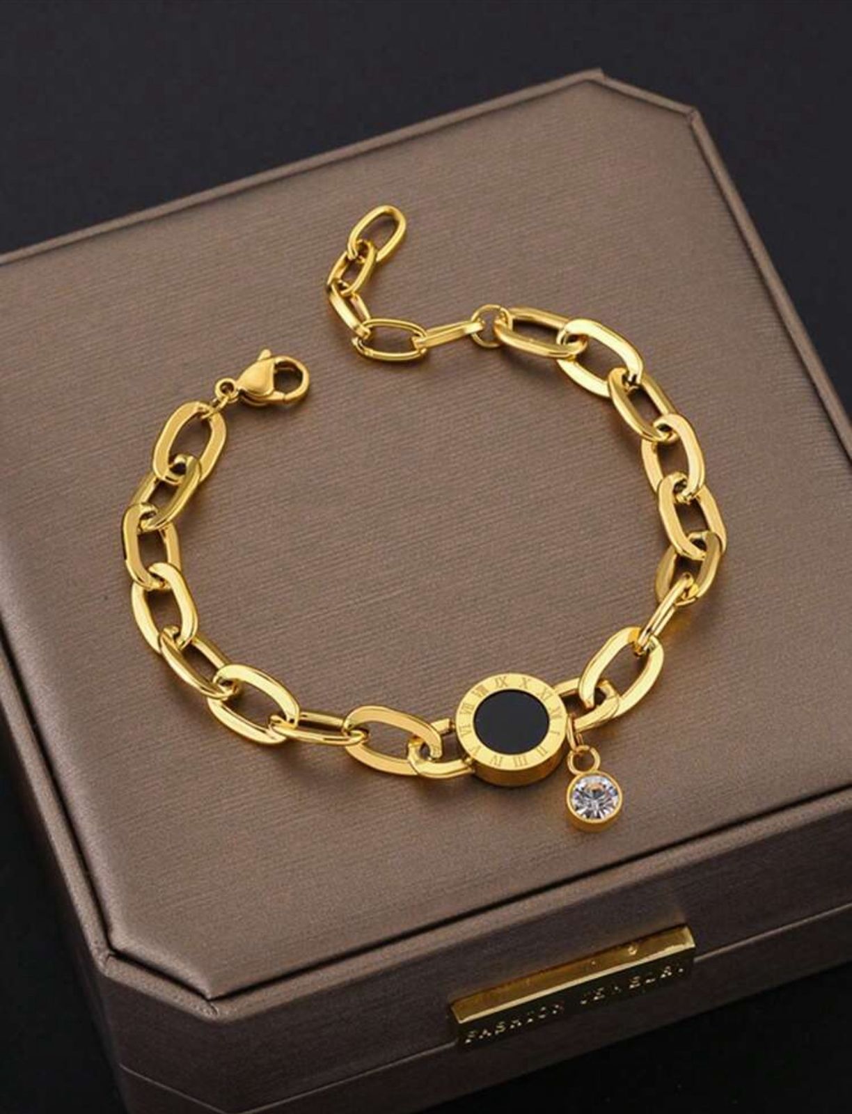 Elegant and sophisticated bracelet with diamond and roman numeral detiling.
